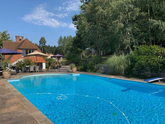 Private outdoor heated luxury swimming pool to relax, take a dip and sunbathe